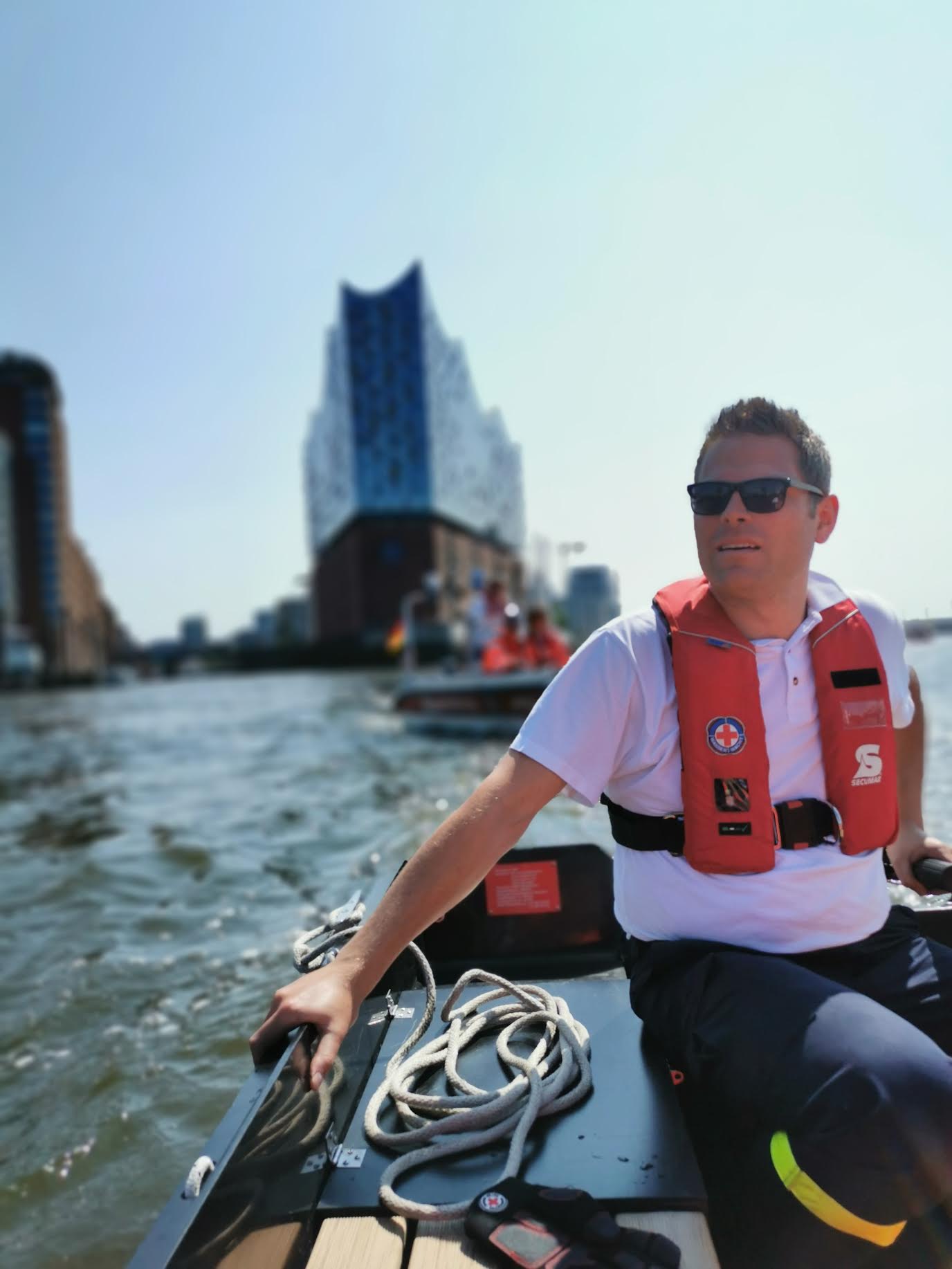 5 Bootsführer und Wasserretter der DRK Wasserwacht Niederrhein aus Rheinberg haben am Wochenende das Sicherungsteam der Ironman-Triathlon Europameisterschaften in Hamburg unterstützt. Das DRK Hamburg hatte zum wiederholten Male die professionelle Hilfe der niederrheinischen Kameraden angefordert.