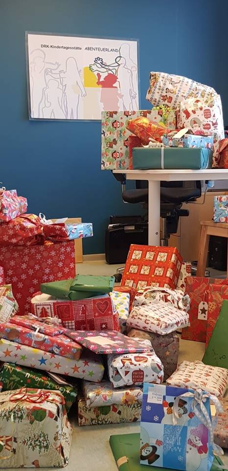 Seit einigen Jahren ist es in der DRK Kita Abenteuerland zu einer schönen Tradition geworden, kurz vor Weihnachten, Geschenke von Kindern für Kinder in der Kleiderkammer des Deutschen Roten Kreuzes Kreisverband Niederrhein e.V. abzugeben.