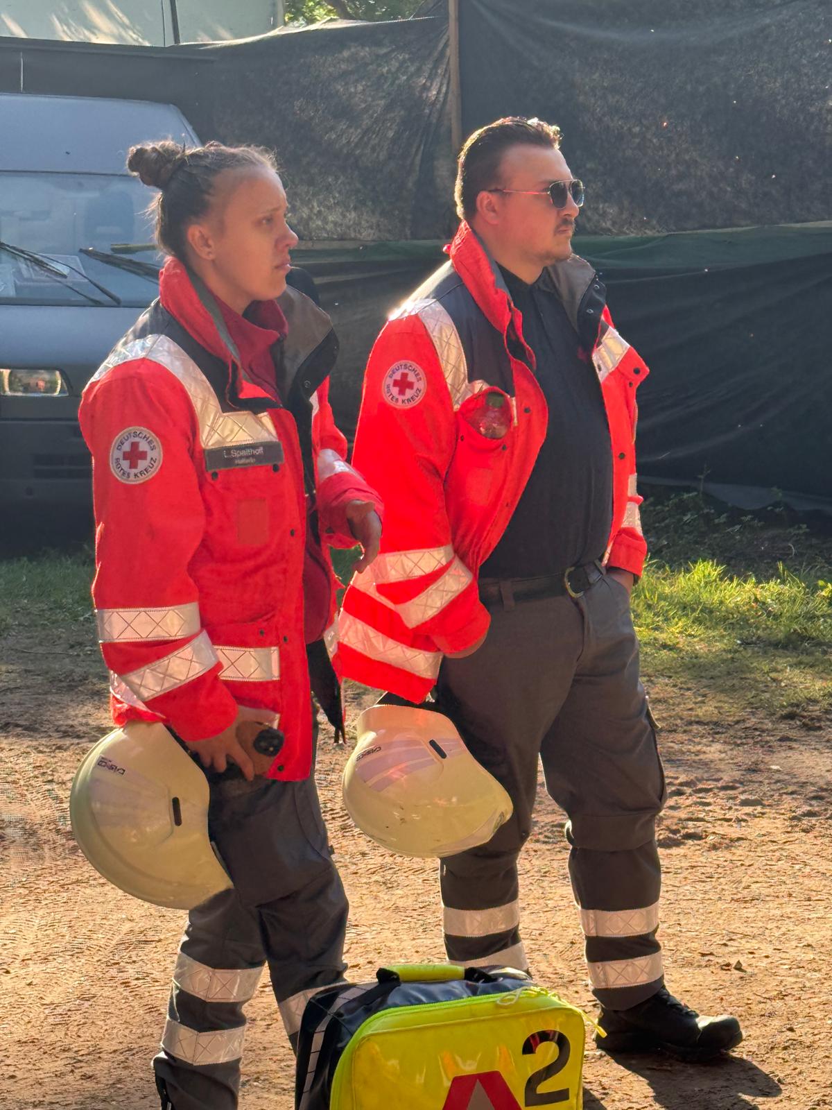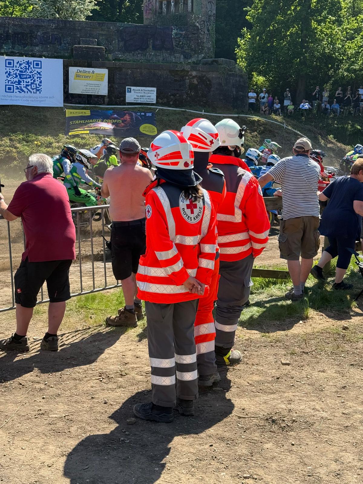Doch während auf der Strecke die Maschinen röhrten, fand hinter den Kulissen ein ebenso beachtlicher Einsatz statt – getragen von ehrenamtlichen Helferinnen und Helfern des Deutschen Roten Kreuzes (DRK) . Sie sorgten dafür, dass im Notfall alles reibungslos funktionierte – aufmerksam, hochprofessionell und mit ganzem Herzen bei der Sache.