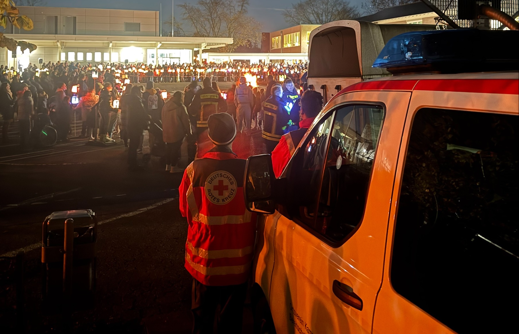 Wenn’s mal dunkel wird, hilft das DRK – notfalls mit einer Ersatzbatterie: Ehrenamtliche des Roten Kreuzes begleiten 26 Sankt-Martinsumzüge im Kreis Wesel